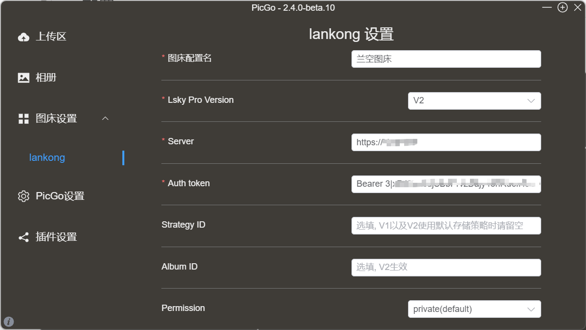 重点就是上有server地址http://lskypro:8089,这里的lskypro就是兰空图床的容器名。